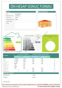 Ruhsat alınmadan önce yapılması planlanan binanın enerji kimlik belgesindeki enerji sınıfı ve sera gazı sınıfının en az C sınıfı olması için tasarlanan yalıtım bilgileri, ısıtma, soğutma ve havalandırma cihazlarının verimi göz önüne alınarak oluşturulan hesap raporudur.
